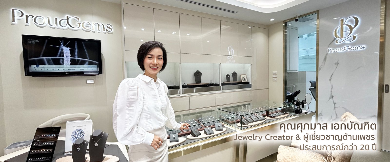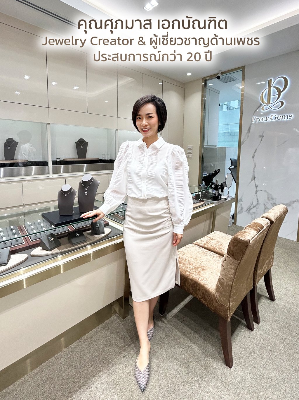 คุณศุภมาส เอกบัณฑิต ทายาทธุรกิจจิวเวลรี่ที่ซึมซับการทำงานด้านเพชรและอัญมณีจากคุณแม่มาตั้งแต่เด็ก ไม่เพียงเป็นทายาทรุ่นที่ 4 ตระกูลช่างทองเพชรบ้านหม้อ คุณมาสยังพกพาดีกรีผู้เชี่ยวชาญด้านเพชรและการออกแบบเครื่องประดับที่มีประสบการณ์สร้างสรรค์งานจิวเวลรี่กว่าหลายหมื่นชิ้นมากว่า 20 ปี แรงบันดาลใจของคุณมาสมาจากการเฝ้าดูคุณแม่สุนีย์ เอกบัณฑิตทำงานด้วยความรักและทุ่มเทในงานจิวเวลรี่มาตั้งแต่เริ่มกิจการ ProudGems เมื่อปี 1994