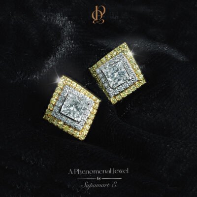 งานโค้งรับใบหู ควบคุมการผลิตระดับมิลลิเมตร (ทศนิยมสองตำแหน่ง) ไปจนถึงเพชร Fancy Yellow ที่หายากมาก ๆ กว่าครึ่งร้อย เลือกจนทุกเม็ดมาลงตัวในทุกตำแหน่ง